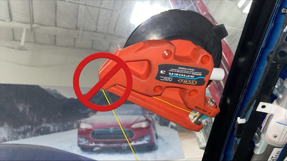 NotePull line away from starter tool, Ensure enough length is pulled through, Wrap spider line up and around the exterior of windshield, Verify the line sits underneath the glass