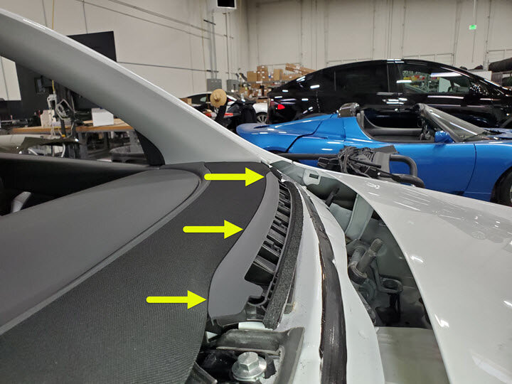 NoteRecommend assistance, use caution with windshield harness, Partially close hood for clearance