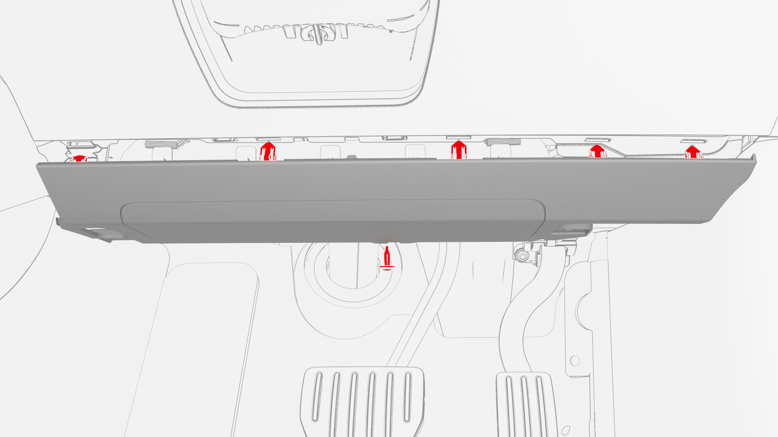 Position the driver knee airbag cover on the vehicle, and then install the clips (x4) that attach the driver knee airbag cover to the vehicle.