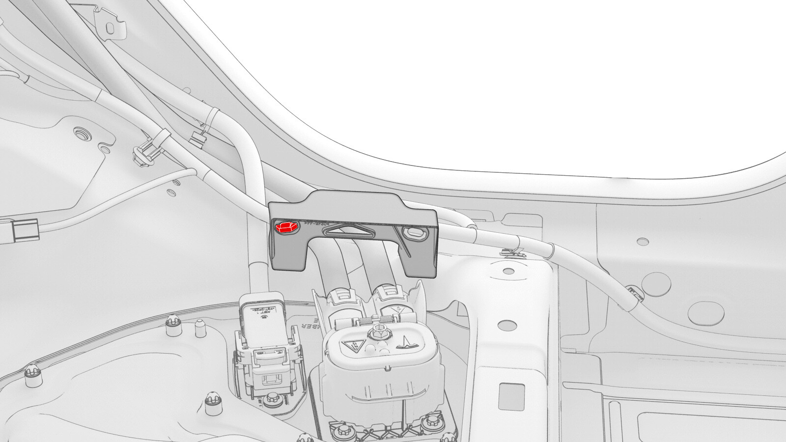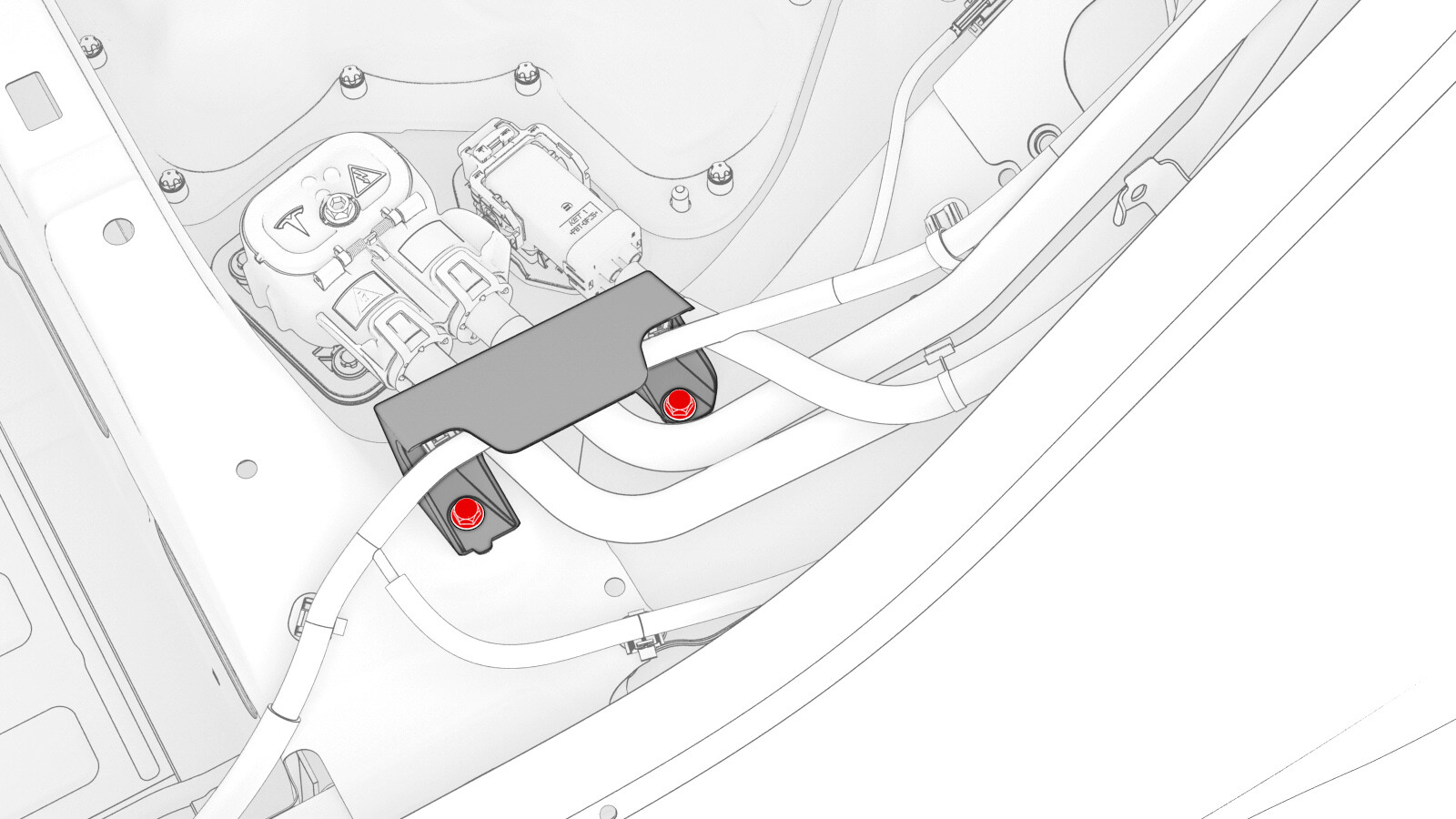 Nm) that holds the charge port busbar access door at the ancillary bay HV