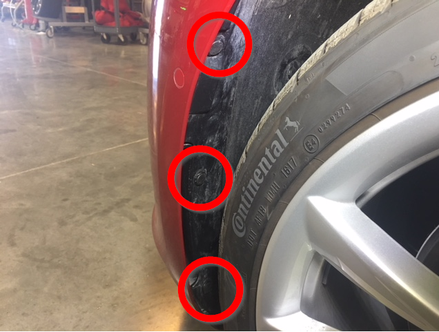 Install the front clips (x3) to the LH and RH side wheel arch liner.