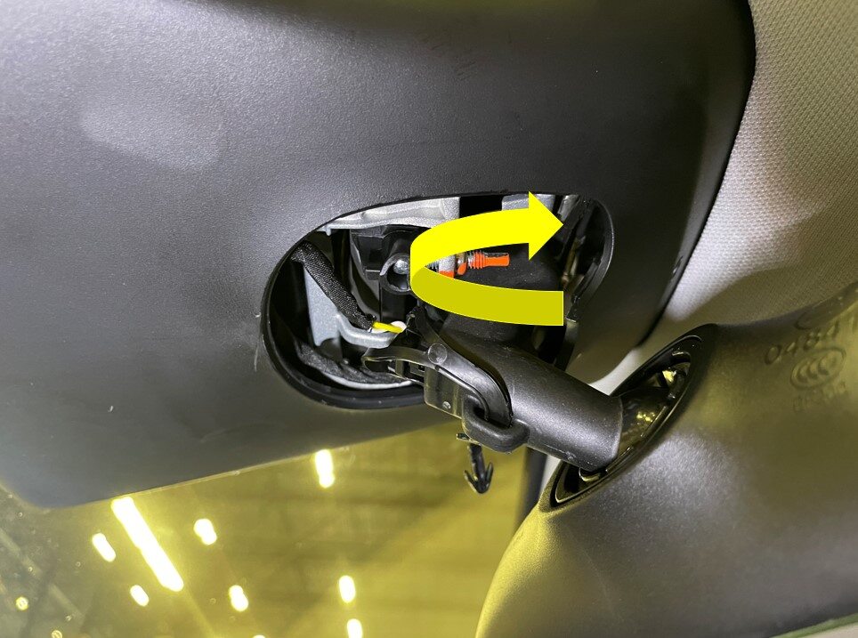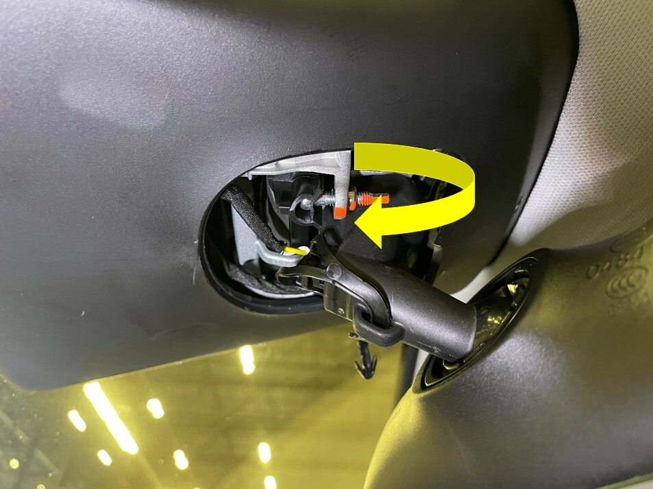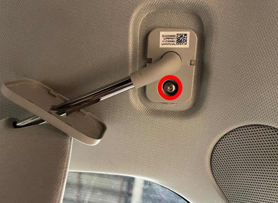 Note1x screw, T25, 3.5 Nm, Extending the sun visor may allow for extra working room