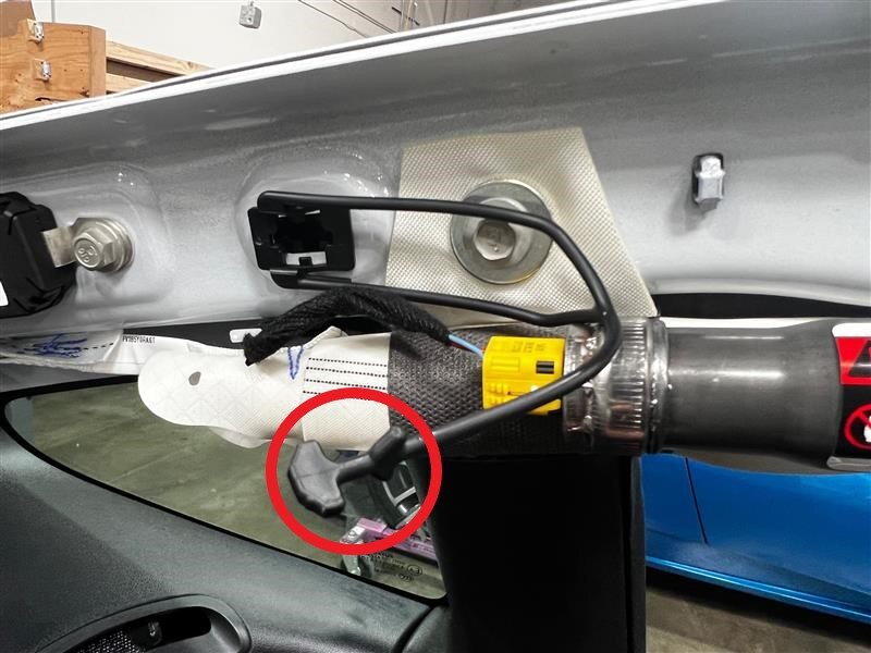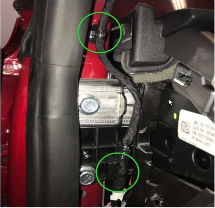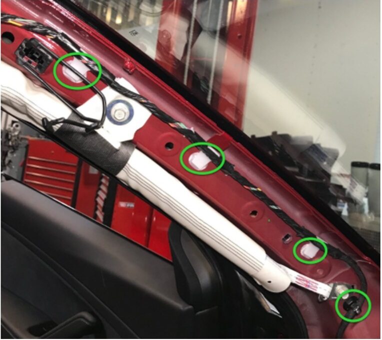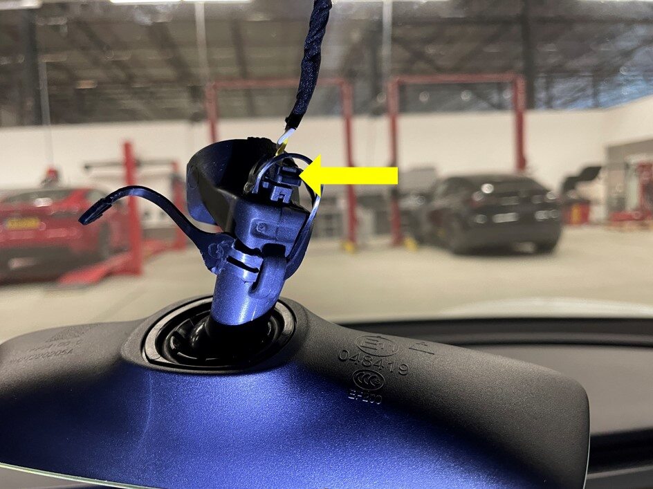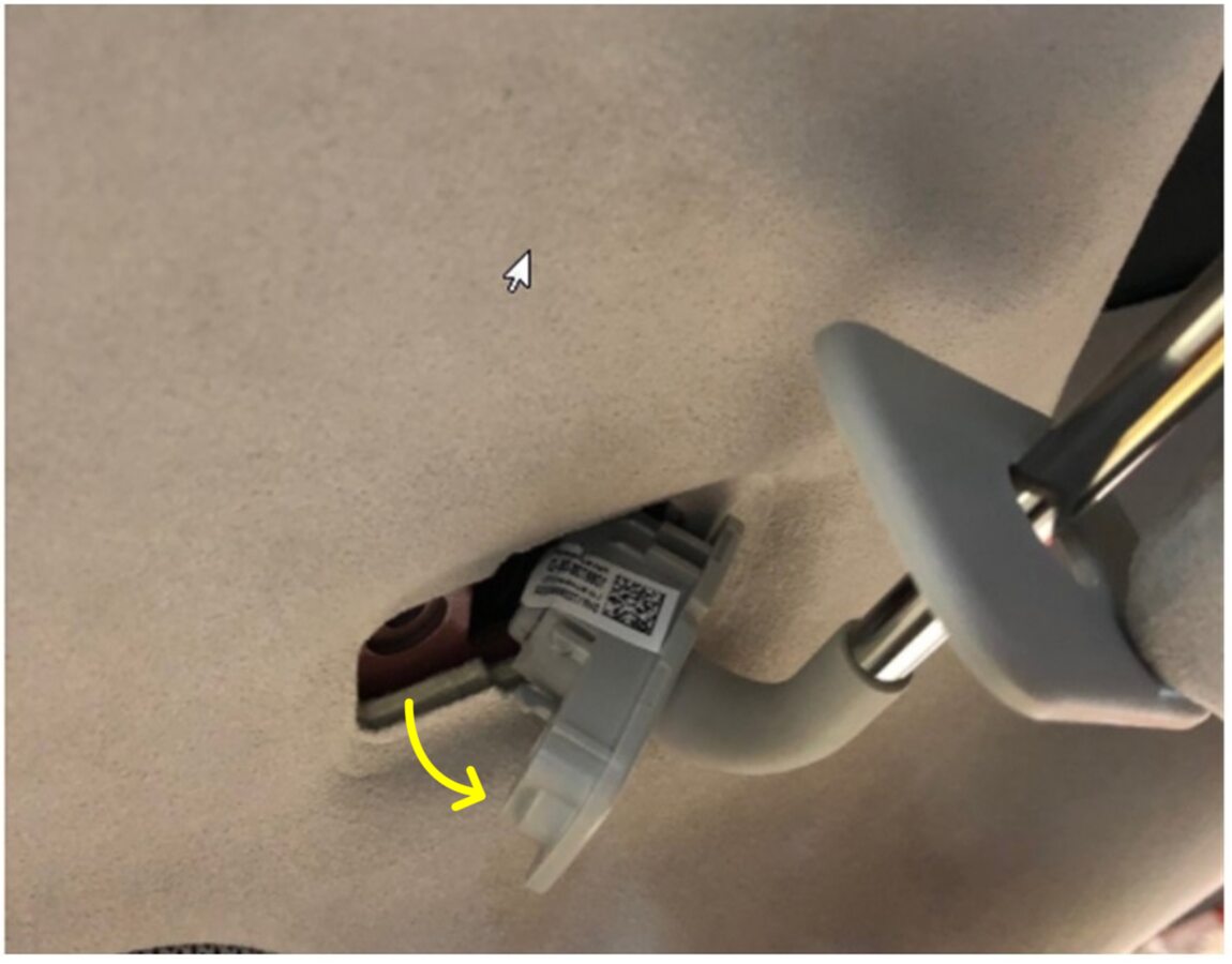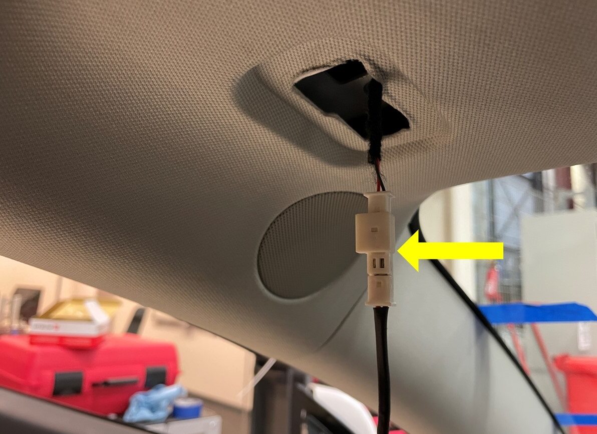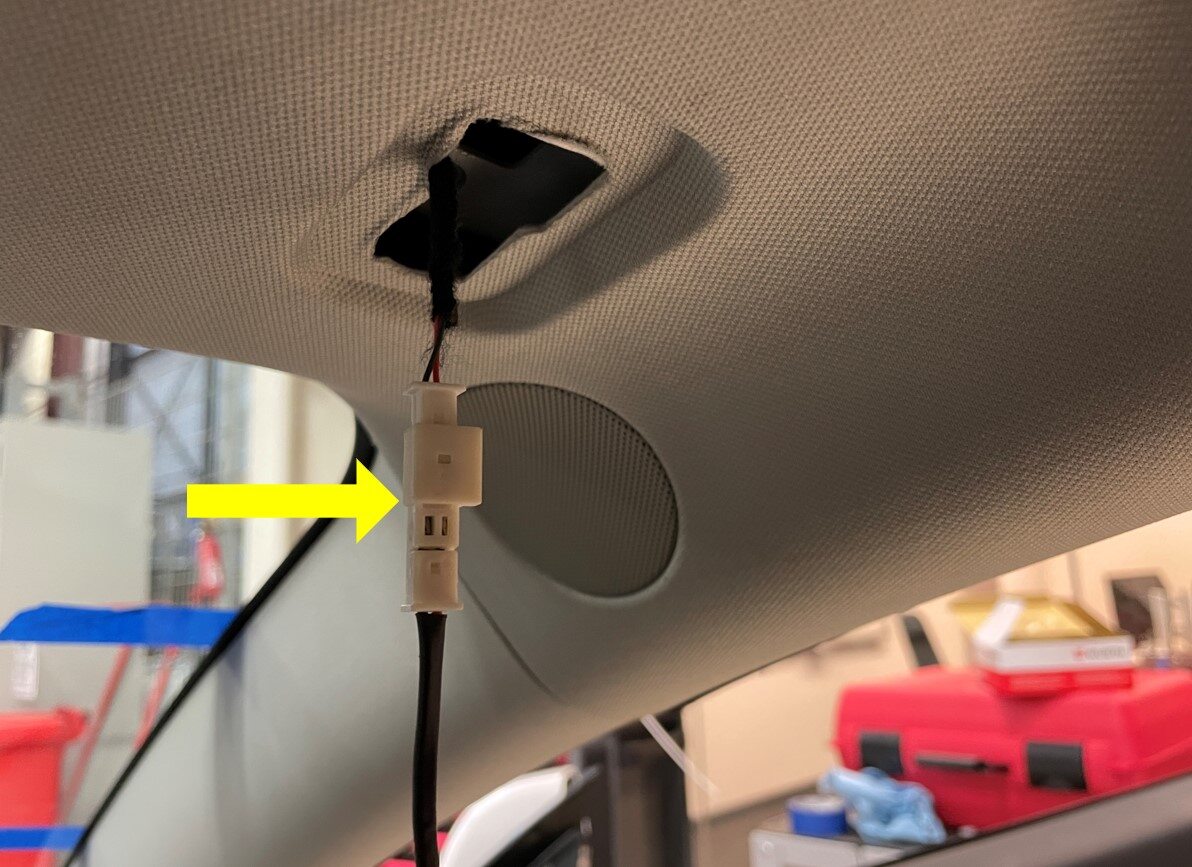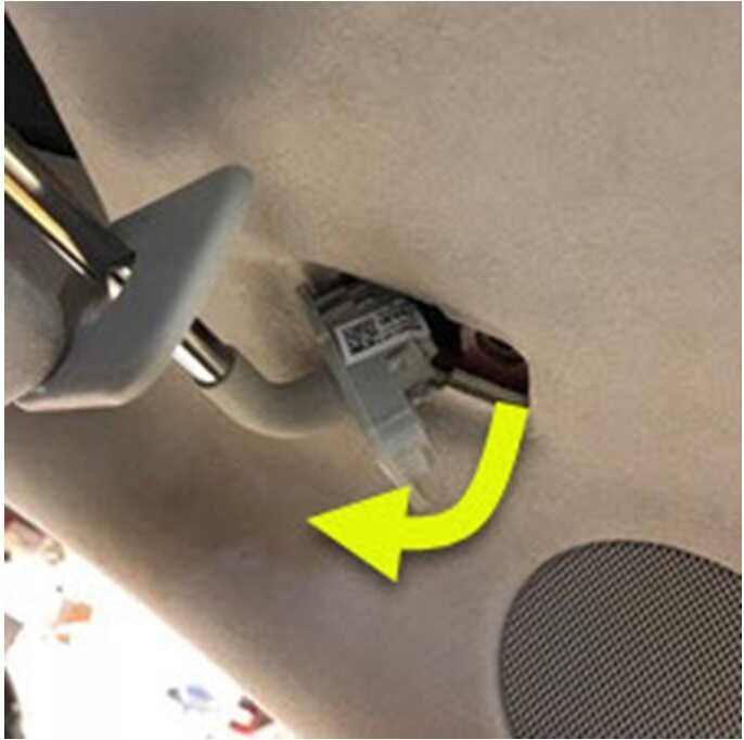 Note1x connector, Push the connector and wire harness backward. If original sun visor check base is magnetic, install original sun visor, otherwise replace the sun visor to the latest revision (region specific)