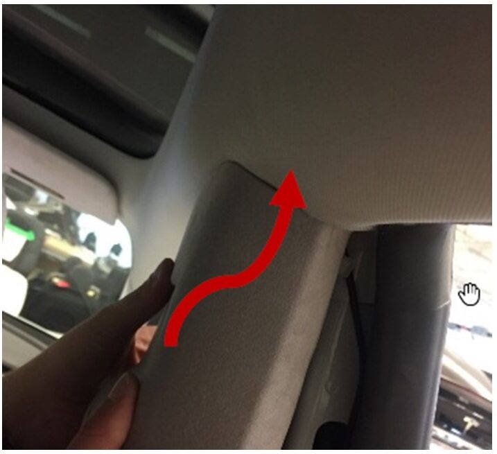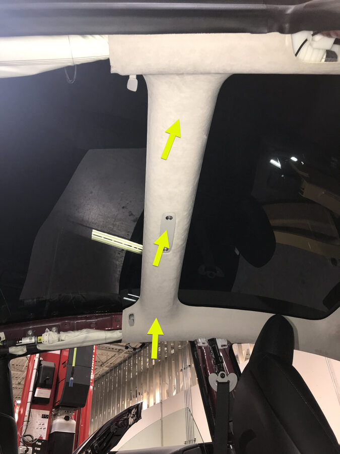 Note3x clips, Pull inside of the upper portion of upper A-pillar, Remove 3x tether hooks by twisting and pulling away from housing, Then pull upper A-pillar upward to remove