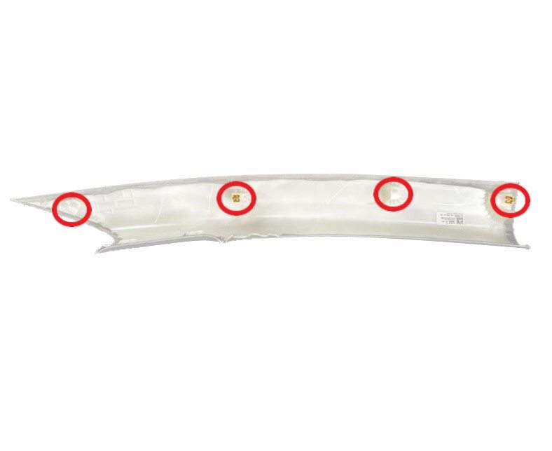 Note1x clip, 1x tab, Release upper clip then pull mid A-pillar upward to remove from vehicle