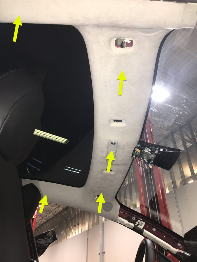 Note10x clips, Start by releasing rear portion of headliner then work your way forward to ease removal