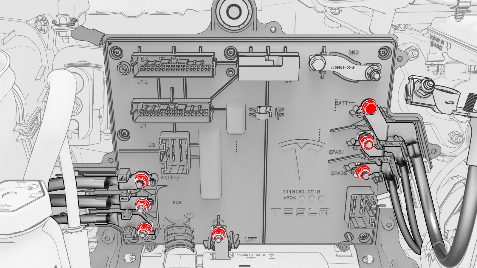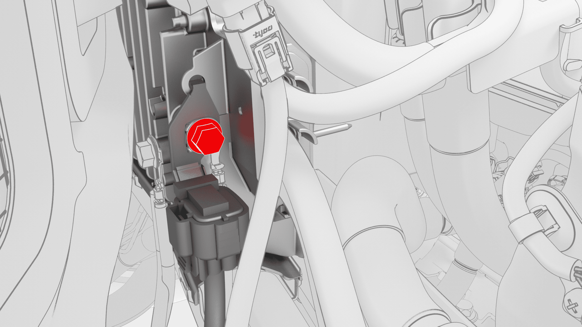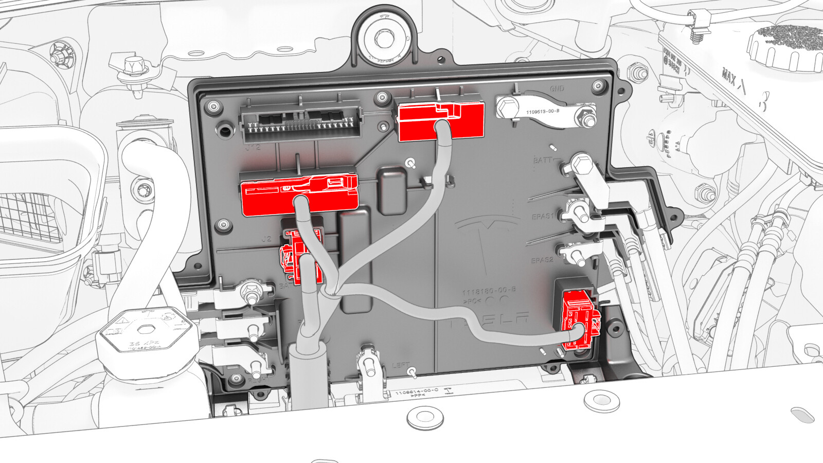 - Remove the 12V auxiliary battery. See 12V/LV Battery (Remove and Replace).