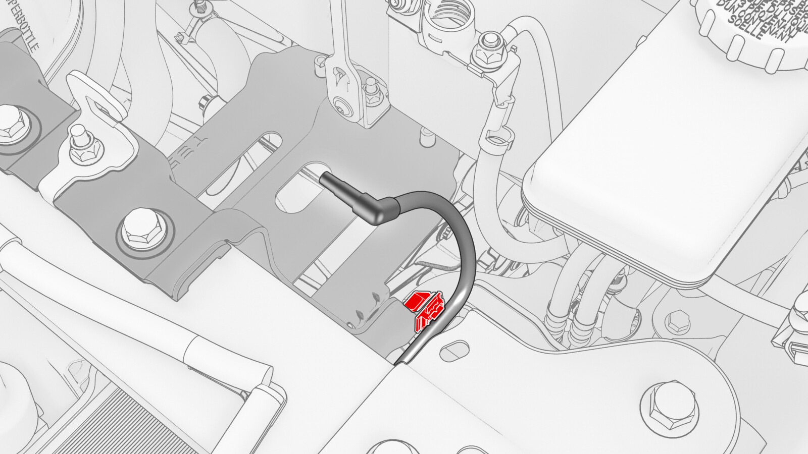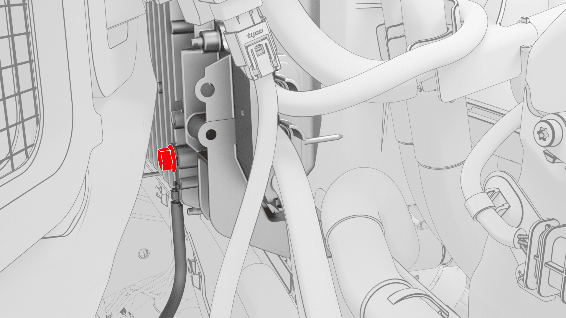 Fasten the clip that attaches the 12V battery vent hose to the 12V battery bracket.