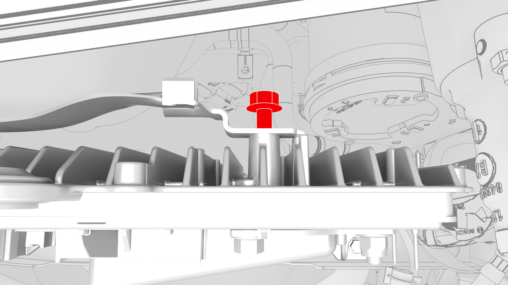 Install the thermal harness cover to the front body controller module, and then install the bolt that attaches the cover to the module.6 Nm (4.4 lbs-ft)
