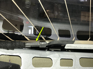 Insert the wire starter tool from inside the vehicle through the adhesive bead at the bottom area of the backlight glass.
