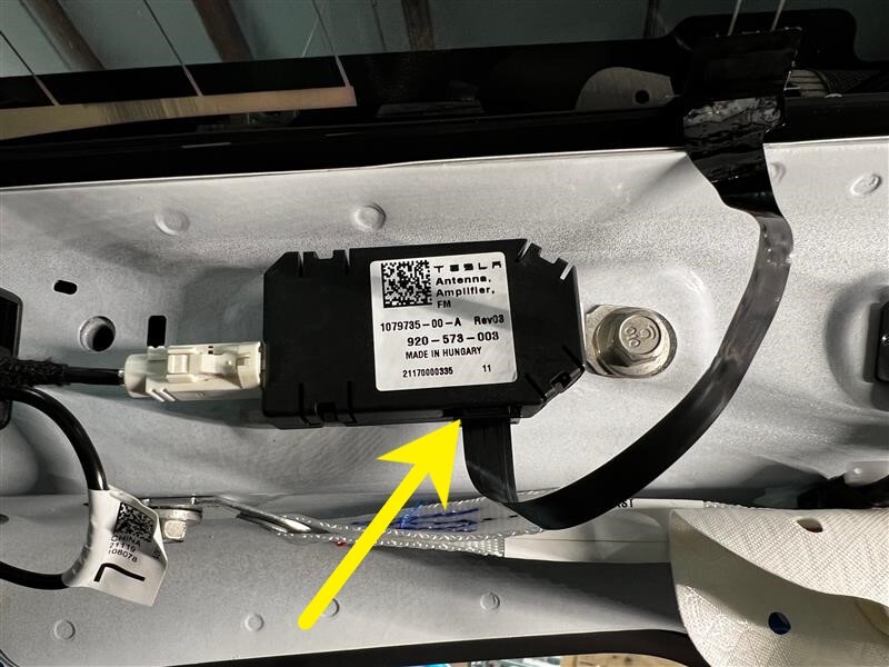 Connect the backlight electrical connector to the FM antenna amplifier.