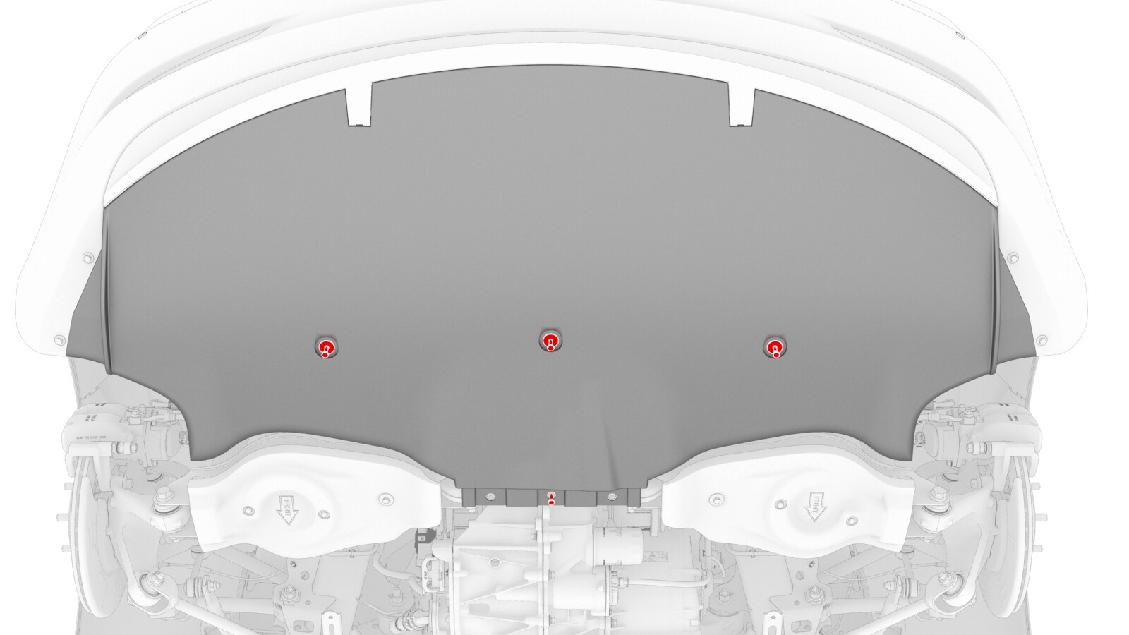Bolts that attach the LH and RH rear suspension covers to the vehicle |