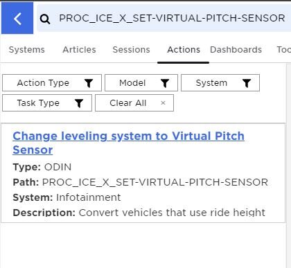 If the vehicle is equipped with a Virtual Pitch Sensor (VPS), in Toolbox 3, click the Actions tab, search for “PROC_ICE_X_SET-VIRTUAL-PITCH-SENSOR”, and then click Change leveling system of Virtual Pitch Sensor.