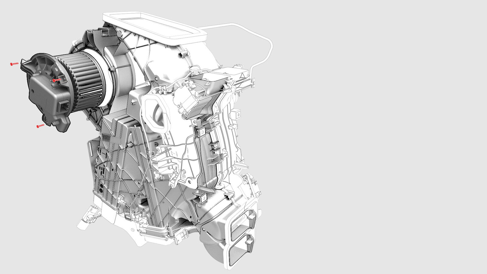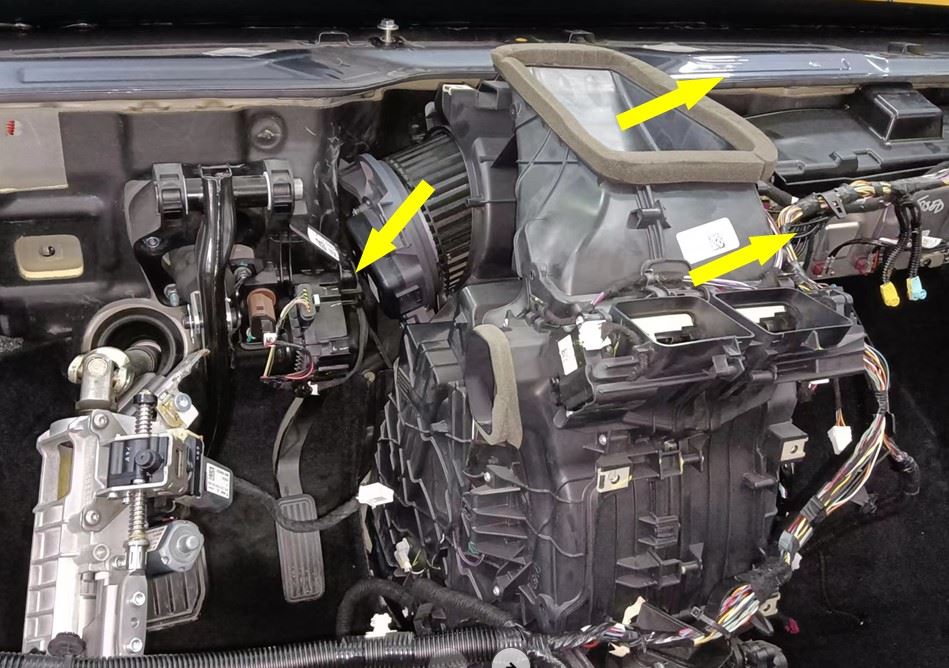 - Slightly move the HVAC assembly towards the RH side of the vehicle and position the HVAC fan motor on the HVAC assembly.