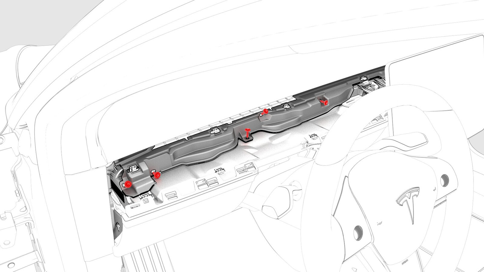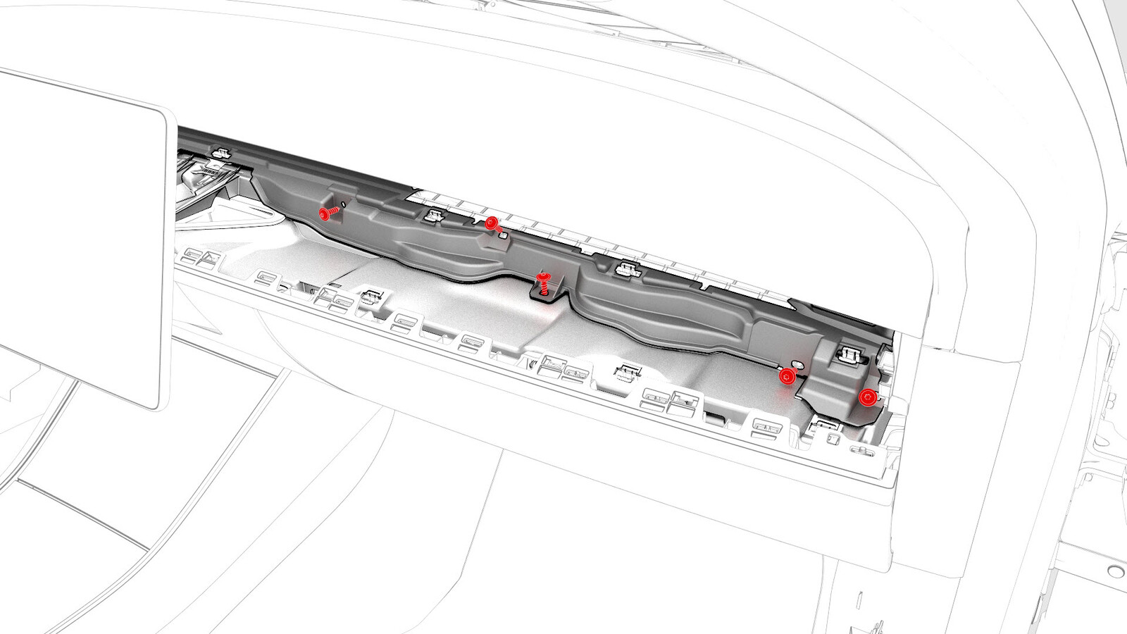 Screws that attach the vent finisher to the IP carrier |