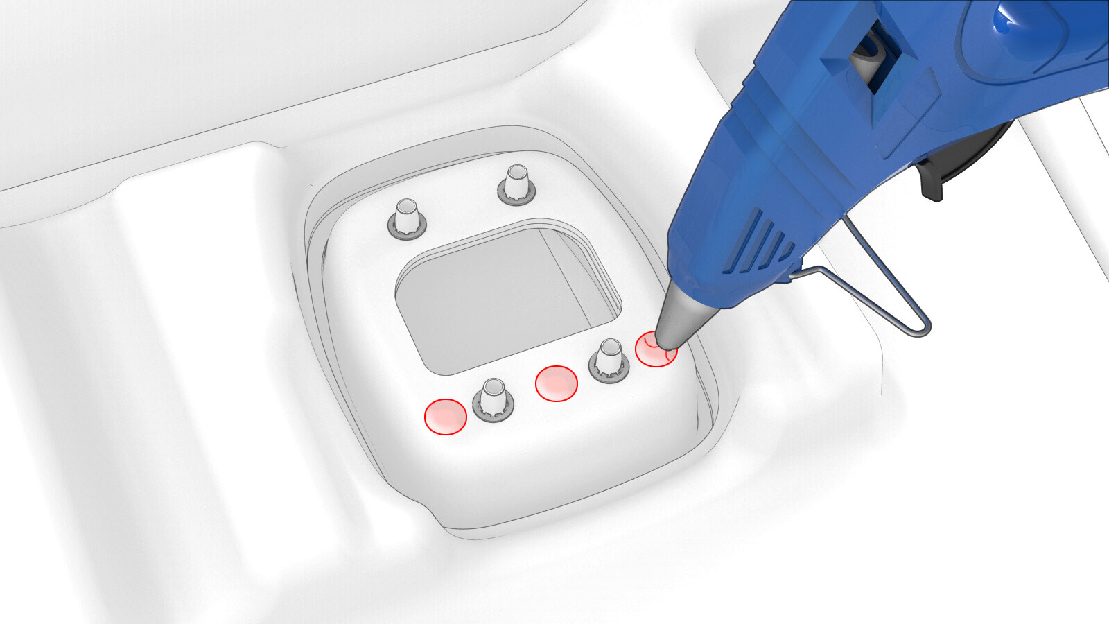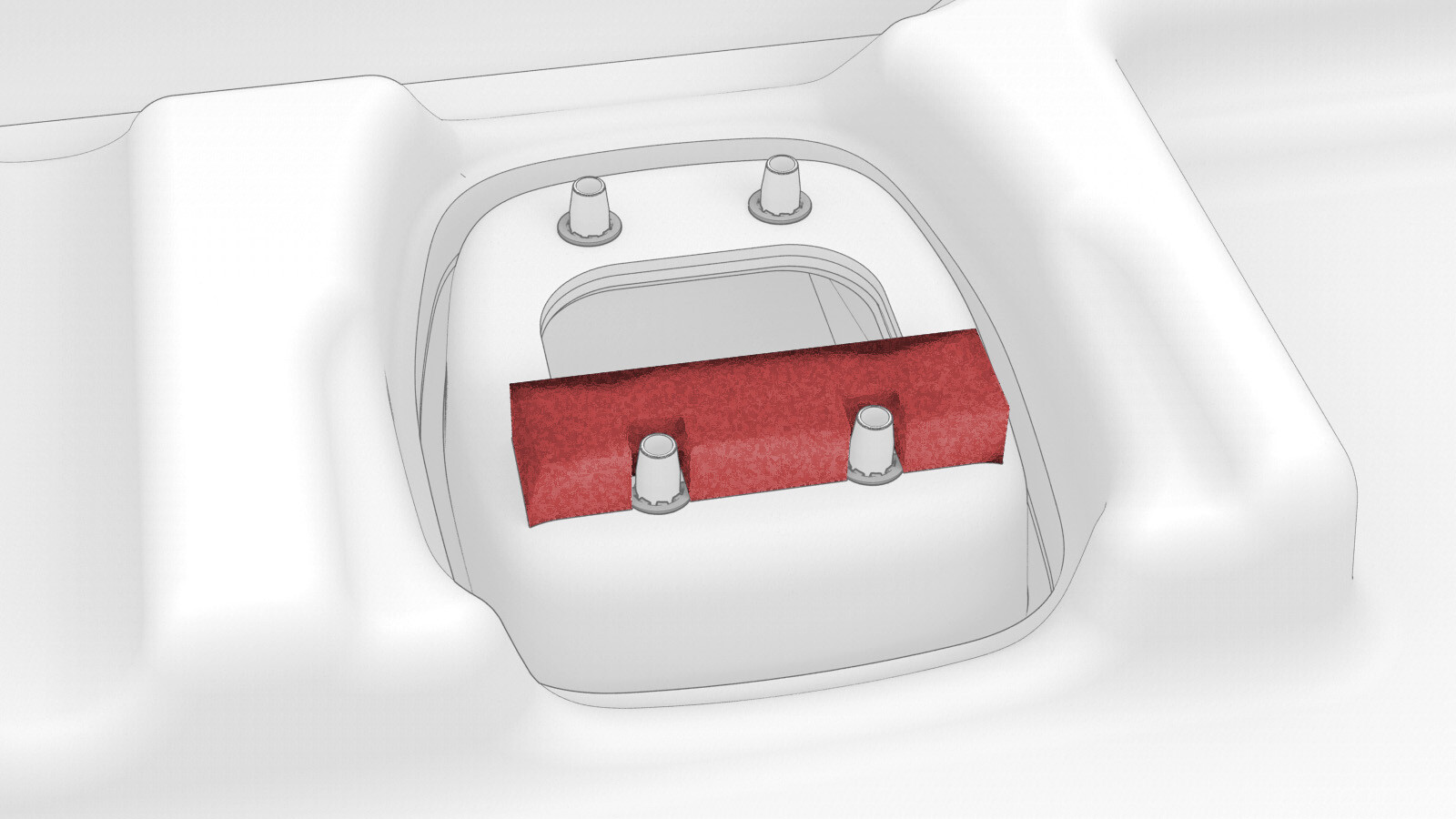 If the tether anchor flip door had a foam block, use a glue gun to apply glue to the areas shown and then install the foam block. Allow the glue to fully dry before continuining.