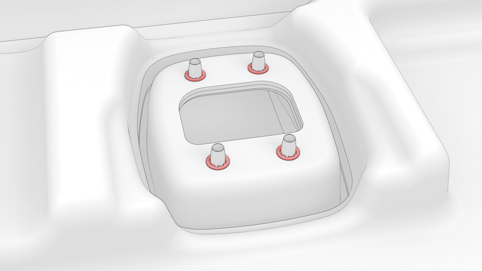 - Place the new tether anchor flip door onto the package tray so that the standoffs are aligned.