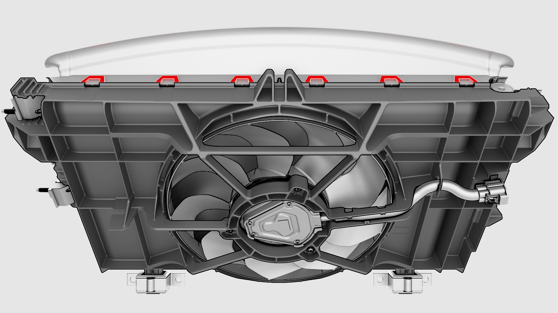 Release the clips (x14) that attach the active grille shutter to the cooling fan module, and then remove the active grille shutter from the module.