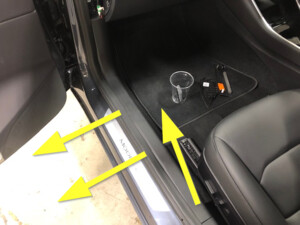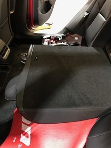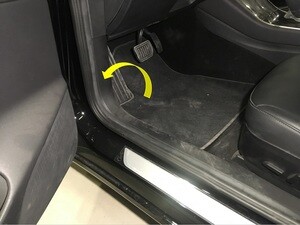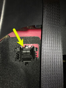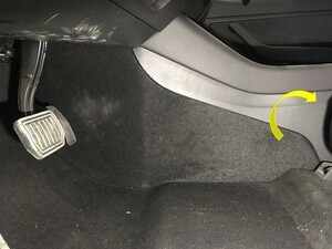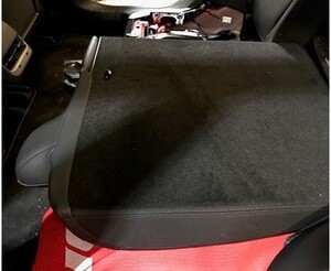 NoteDead pedal and foam block are part of carpet, Release seat harness from clip to allow the carpet to fold back more