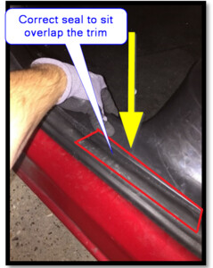 Note1x clip, 1x tab, Align the bottom tab then push the top clip to fully seat mid A-pillar, Make sure the seal seat on top of the trim