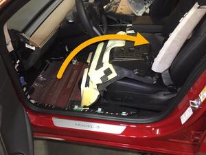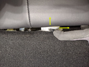 NoteMove front edge down and slide back section up to ease positioning, Install seat harness into clips