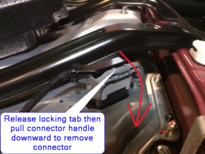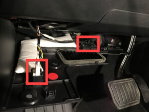 Note3x tabs, 1x Ethernet connector, 1x puddle light connector, APAC specific vehicles an additional ODII connector will have to be disconnected
