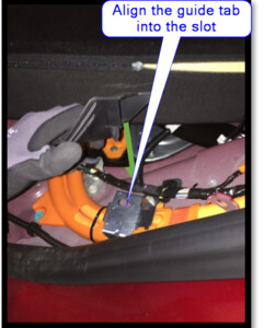 NoteMove front edge down and slide back section up to ease positioning, Install seat harness into clip