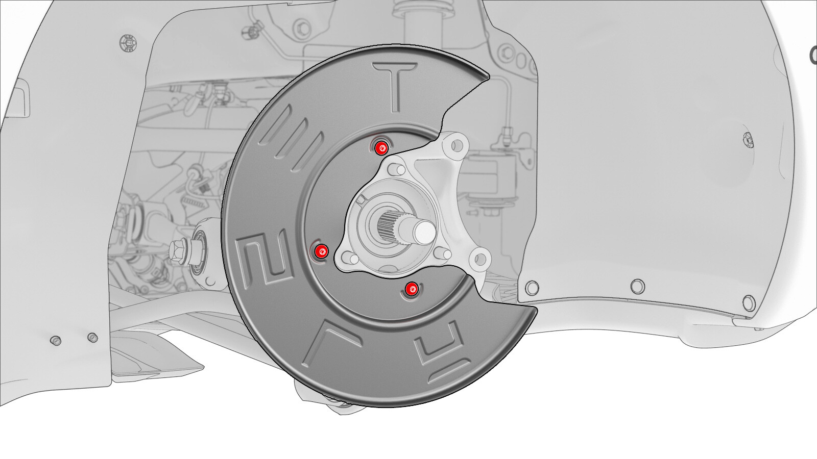 Remove the bolts that attach the LH rear brake dust shield to the knuckle, and then remove the dust shield from the vehicle.
