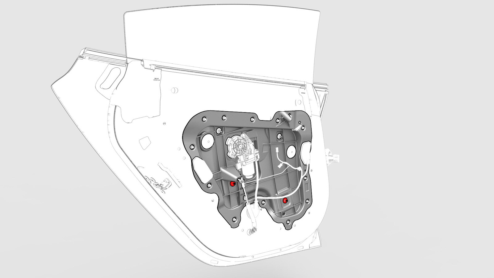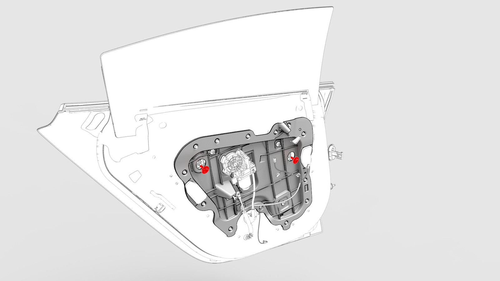 Fasteners that attach the window regulator to the closeout panel |