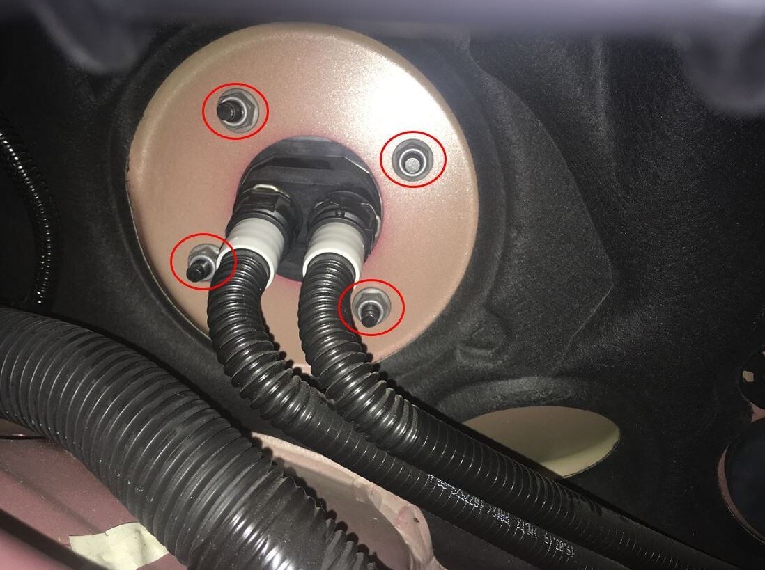 Note4x nyloc nuts (newer vehicles have 6x nyloc nuts), 13mm, 7.1 Nm. If necessary, keep two nuts threaded to hold car computer in place. Discard nuts after removal
