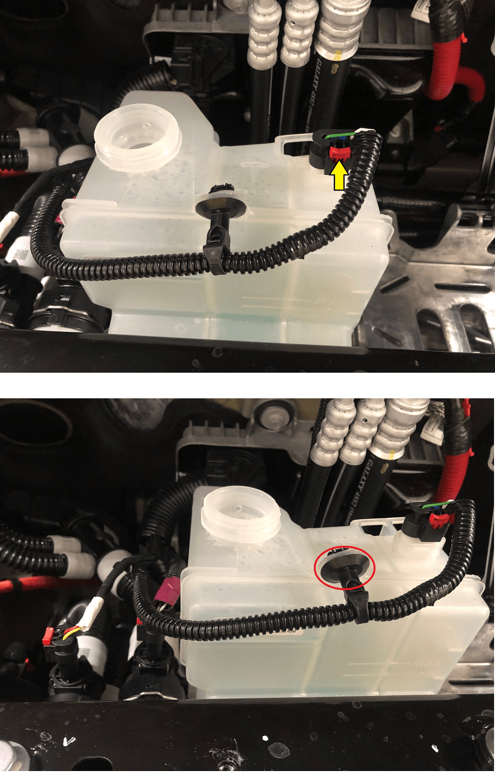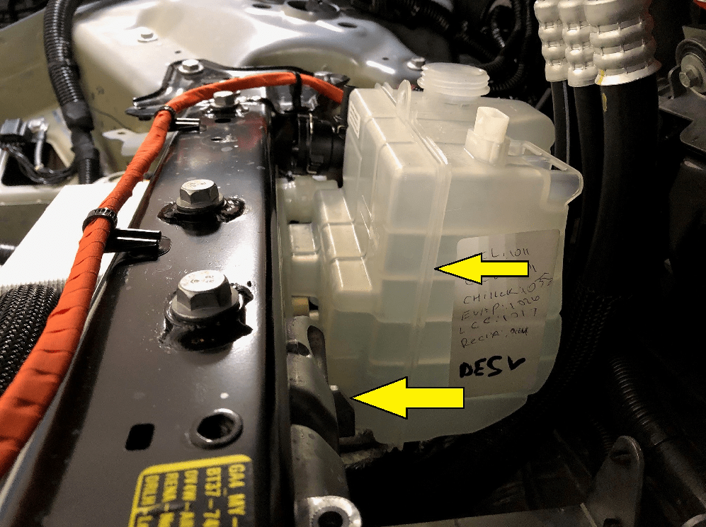 Nm) at the rear and front of the coolant reservoir that secure the coolant
