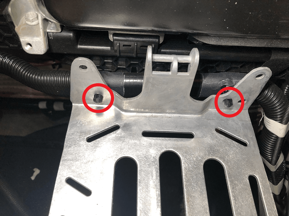 Install the bolts (x2) (torque 9Nm) that attach the 12V battery bracket