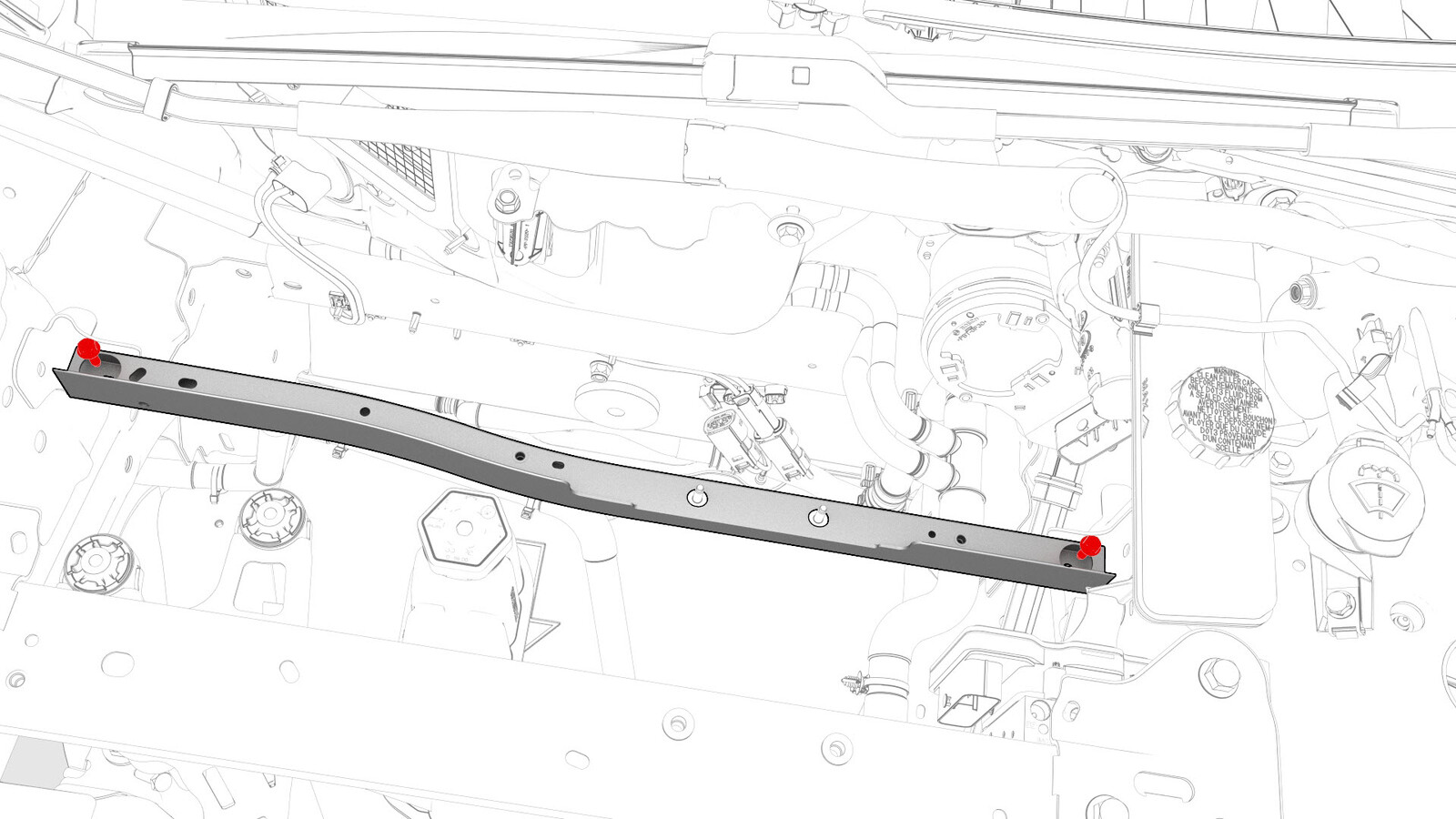 Install the LH and RH outer bolts that attach the shock tower brace to the