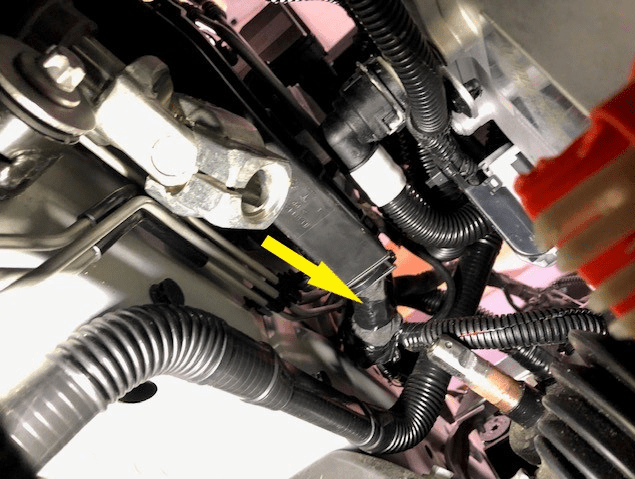 Disconnect the sensor for the chiller to battery hose and the sensor for