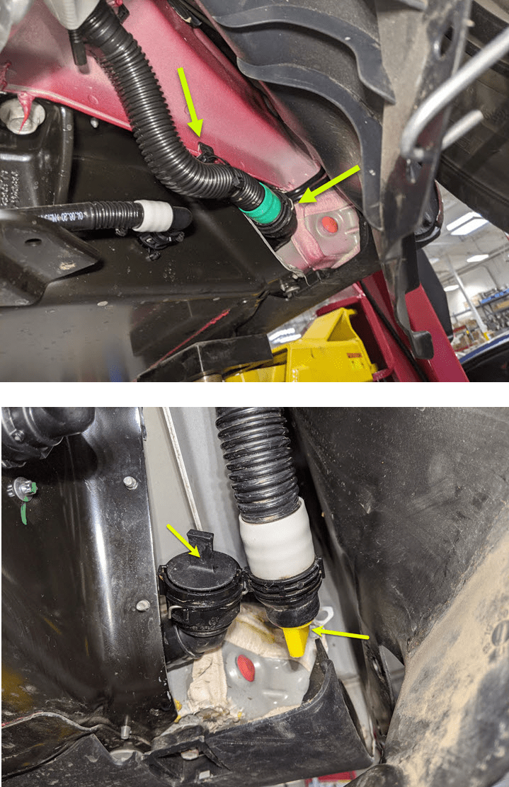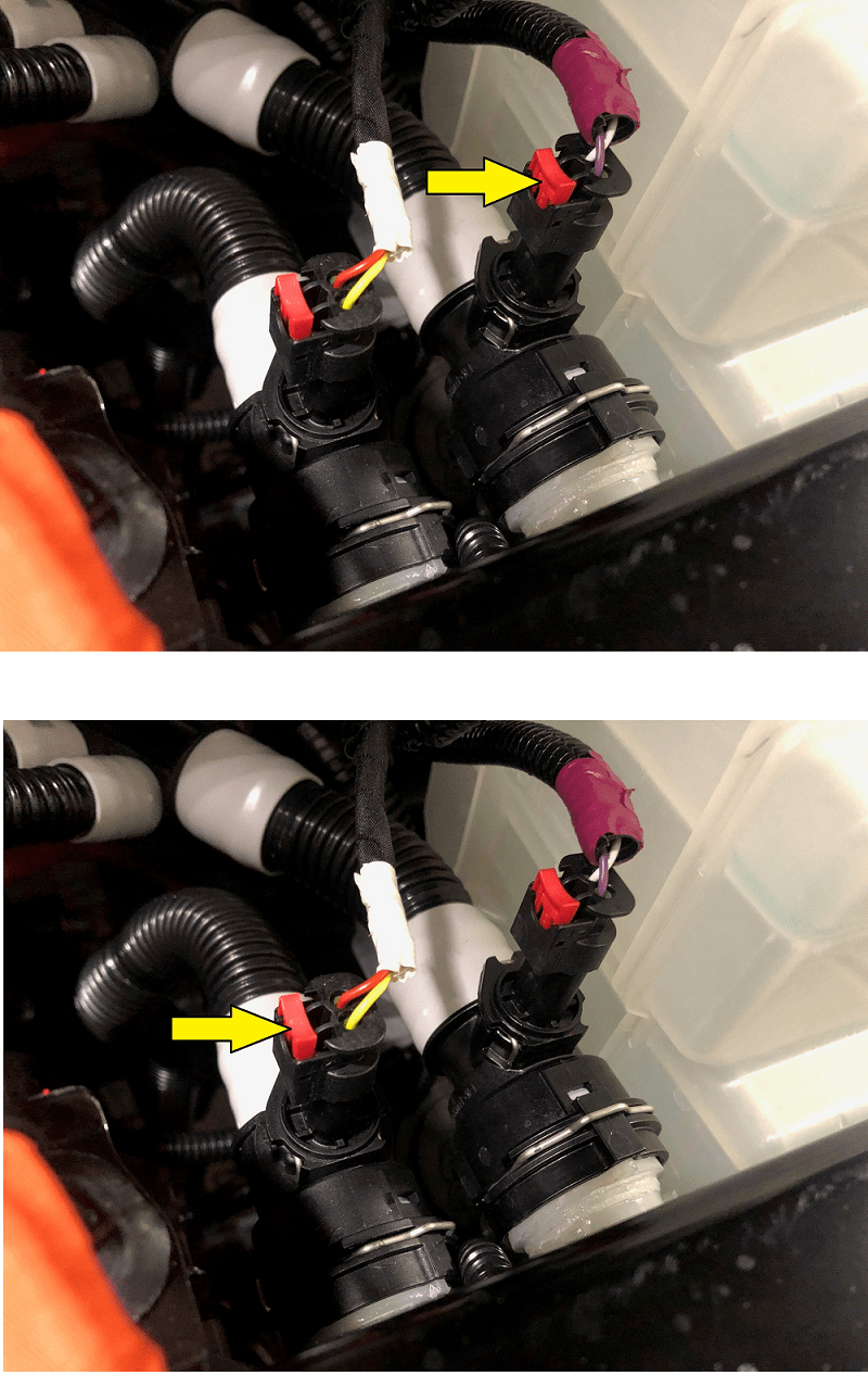 return tube from the HV battery hose: release clips (2x) and remove plugs