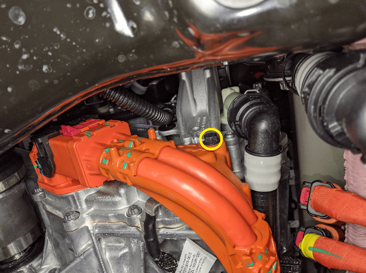 Install the bolt (torque 10 Nm) that secures the front drive unit HV