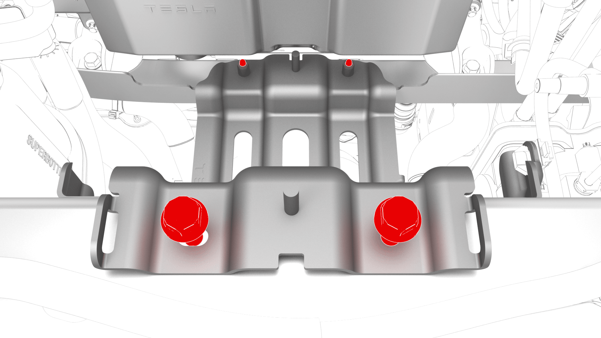 NoteReach through under the superbottle to gain access to the underside of the battery beam and the lower bolts.