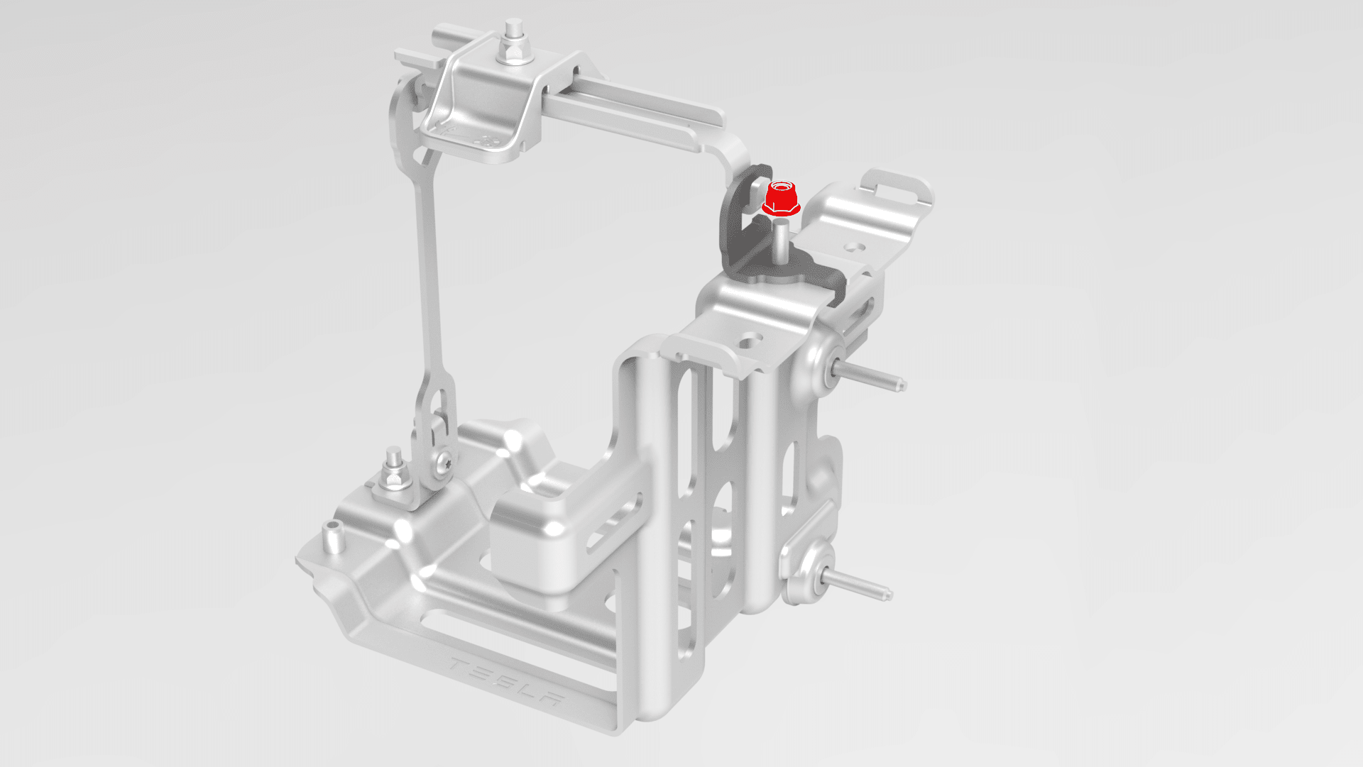 - Install the battery bracket to the shock tower brace and battery beam, and then shift the LH side of the shock tower brace rearward so that the bolt holes in the brace and shock tower align..