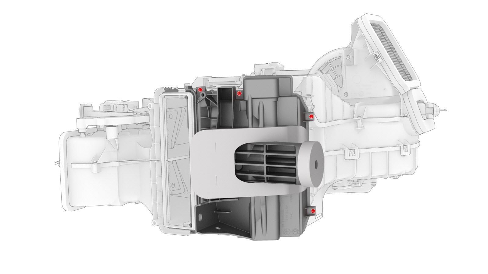 Remove the screws that attach the PTC to the HVAC assembly, and then pull out the PTC heater from the HVAC assembly.