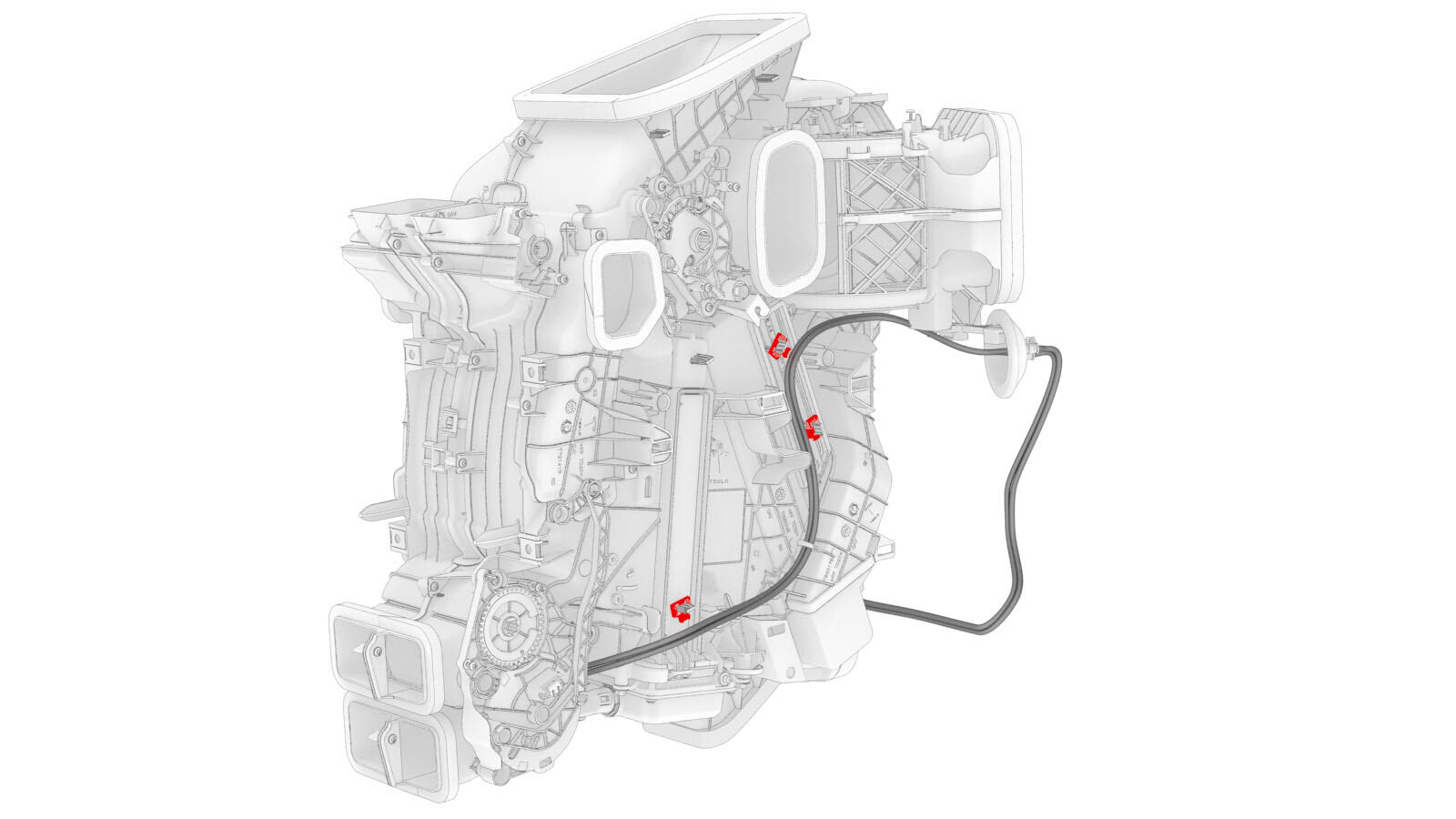 Install the clips that attach PTC heather electrical harness onto the HVAC assembly.