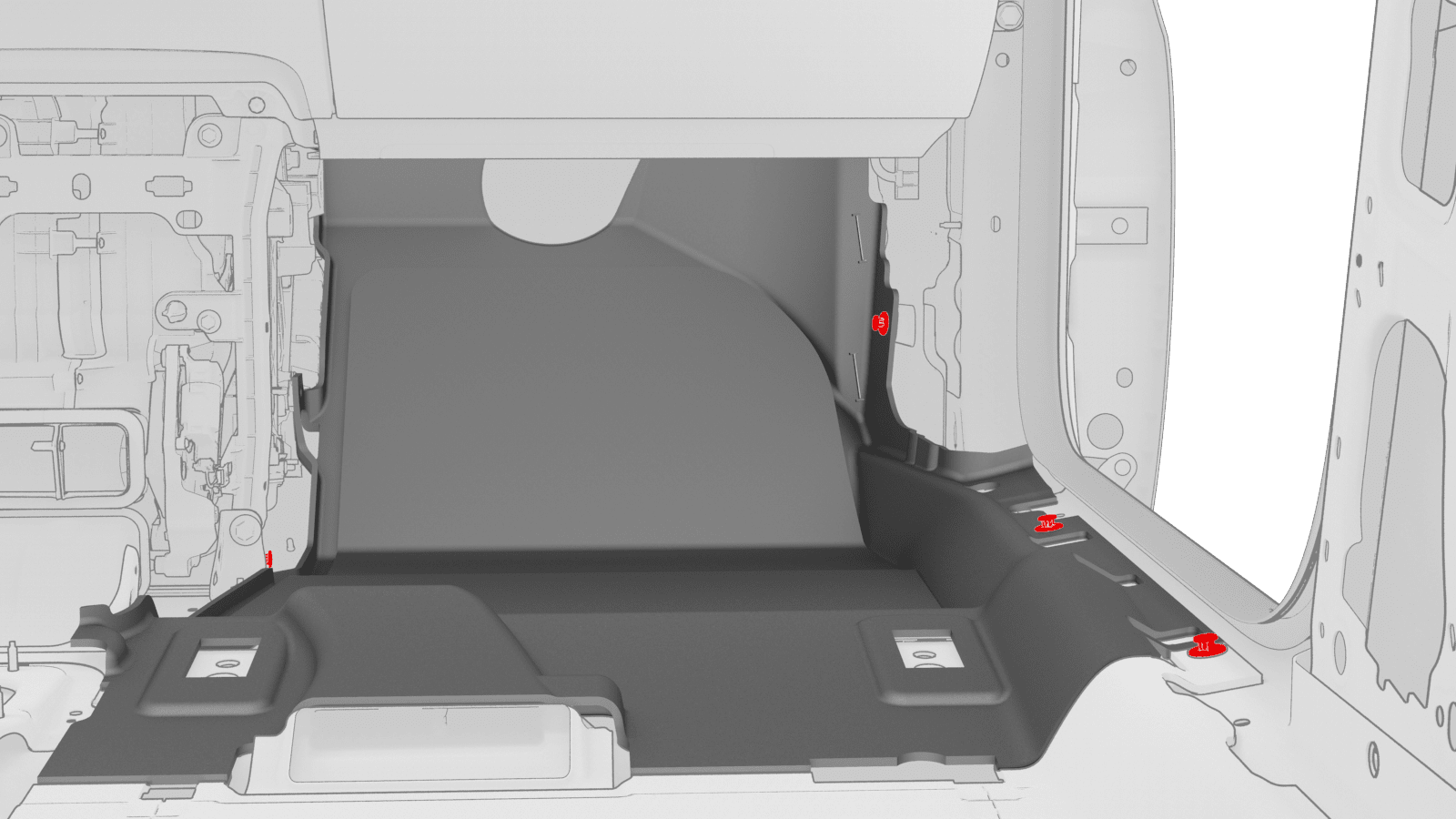 Release the clips that attach the RH front carpet to the body, and then remove the RH front carpet from the vehicle.
