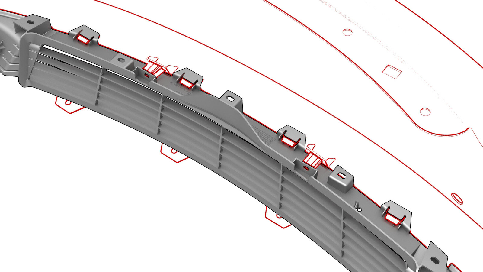 grille onto the front fascia, and then fasten the clips (x9) that attach the