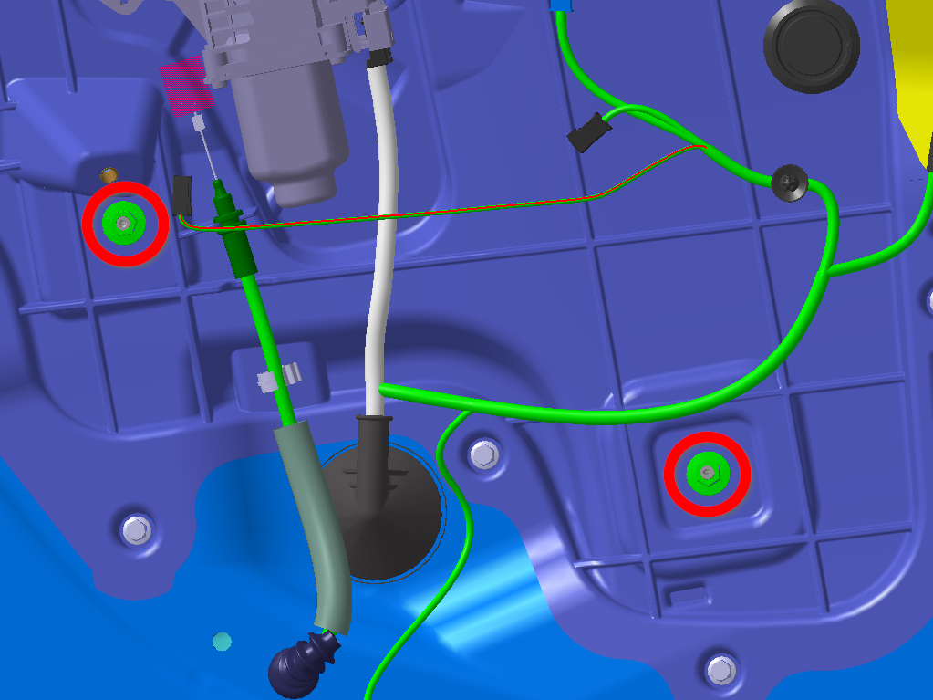 the openings in the door regulator isolation clamps.
