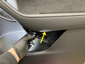 Release the clips (x2) that attach the puddle light to the bolt cover and