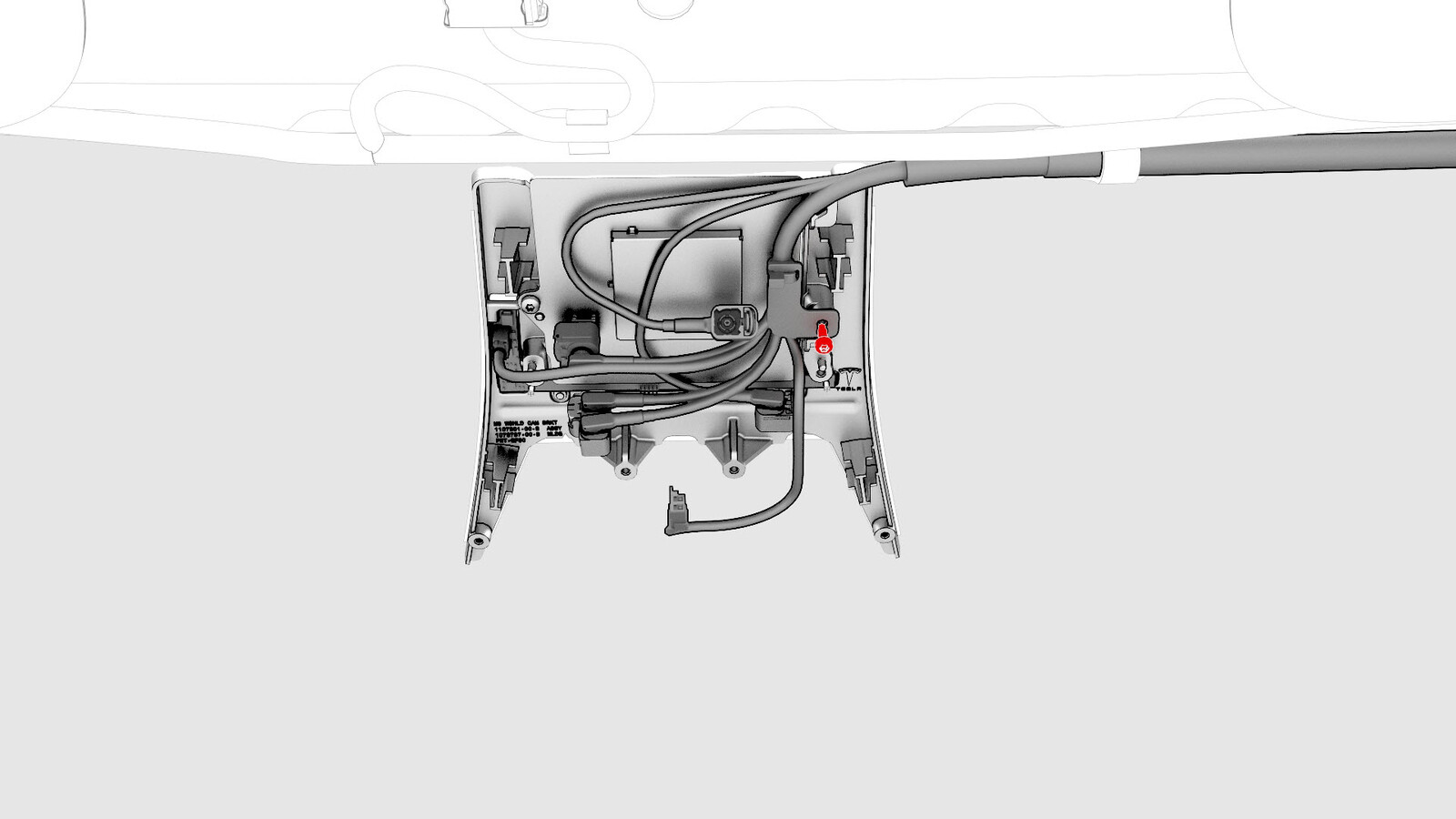NoteIt is not necessary to disconnect the electrical harness from the triple camera assembly. After removing the fasteners that attach the triple camera assembly to the vehicle, allow the assembly to hang from the harness.