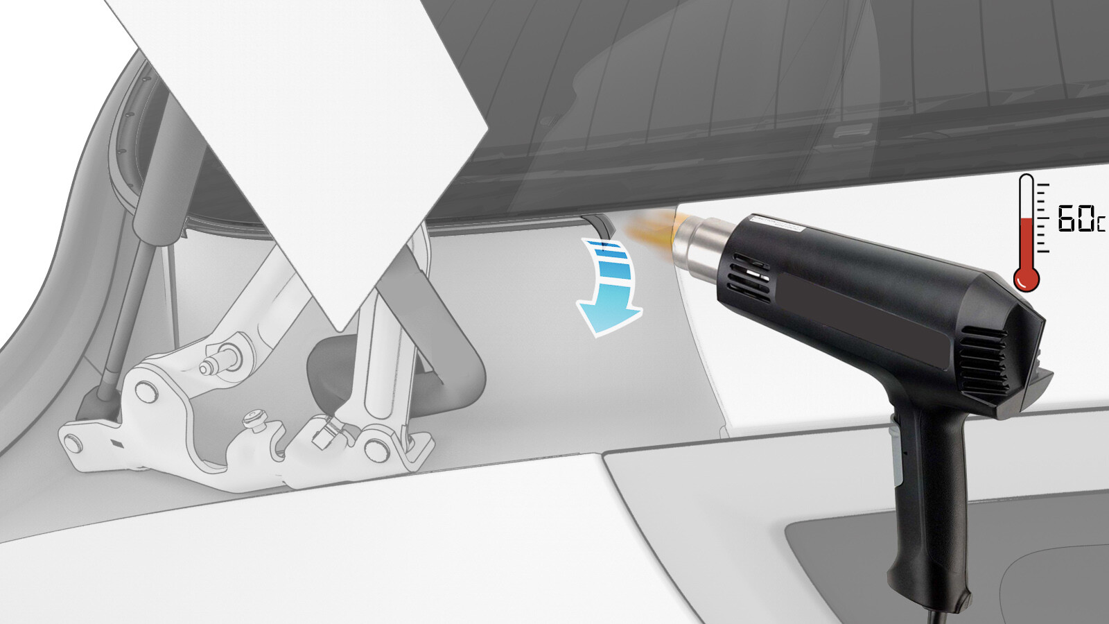 of the trunk flip seal, heat up the area surrounding the trunk flip seal to