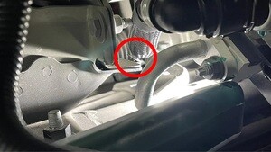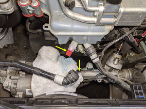 - Place absorbent material underneath the superbottle hose fittings to avoid coolant on the steering gear connections.