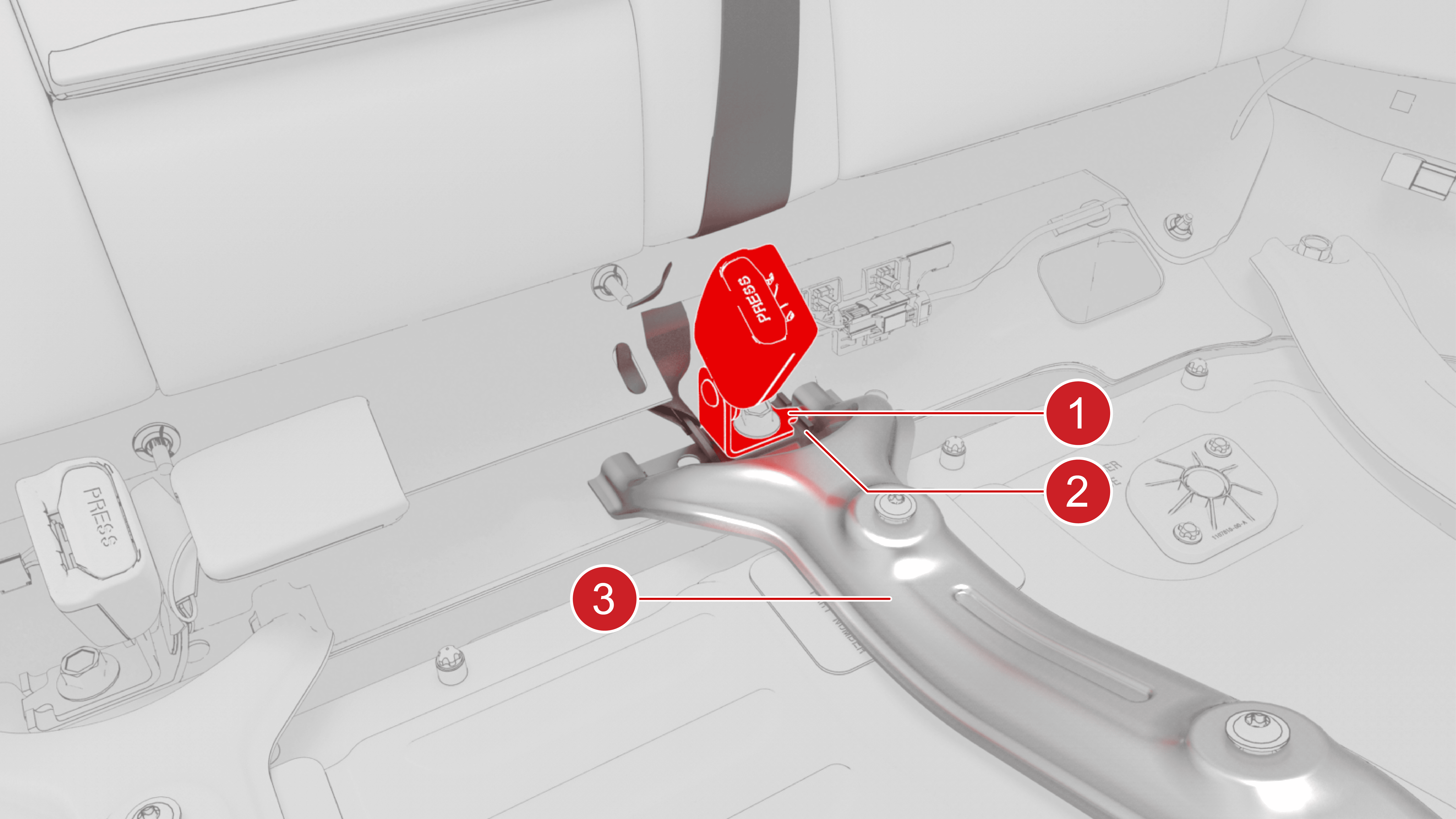 Callout Description 1 LH 2nd Row Buckle on Top 2 Center 2nd Row Seatbelt Anchor in the Middle 3 LH Inner Ancillary Bay Rail at the Bottom -
