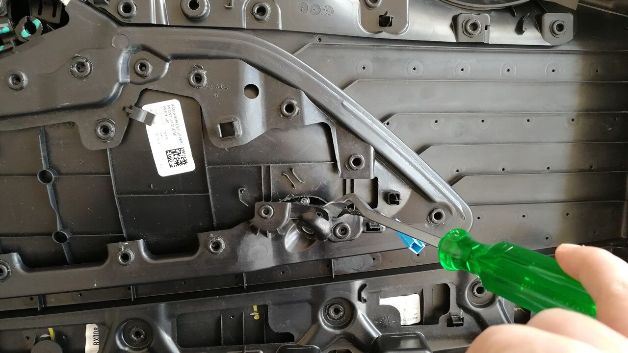 remove the bolt that attaches the interior door release handle switch to the door trim