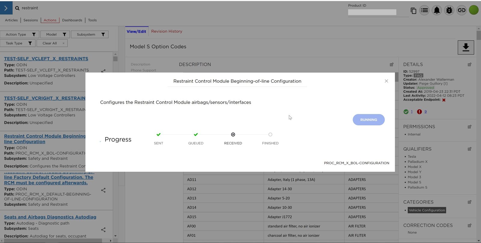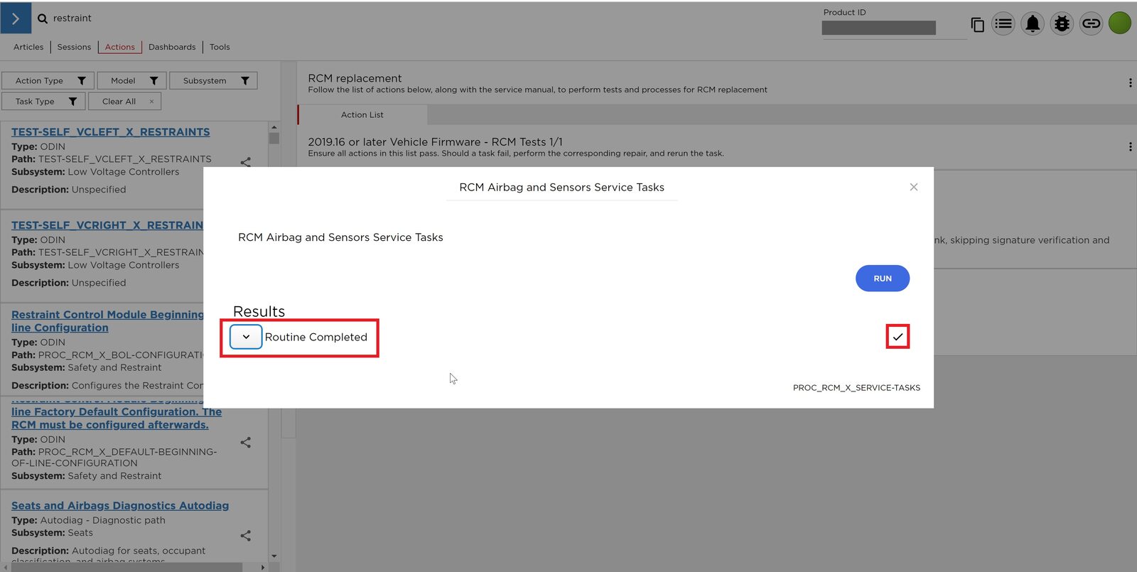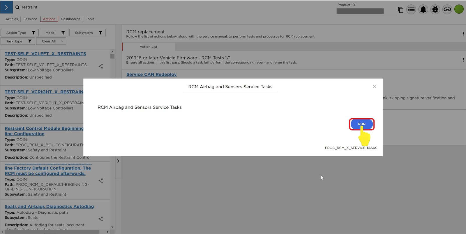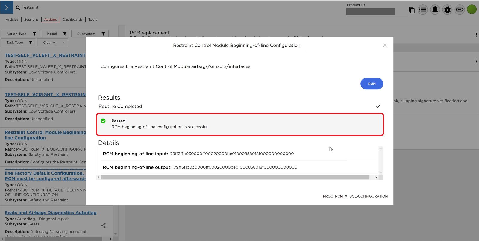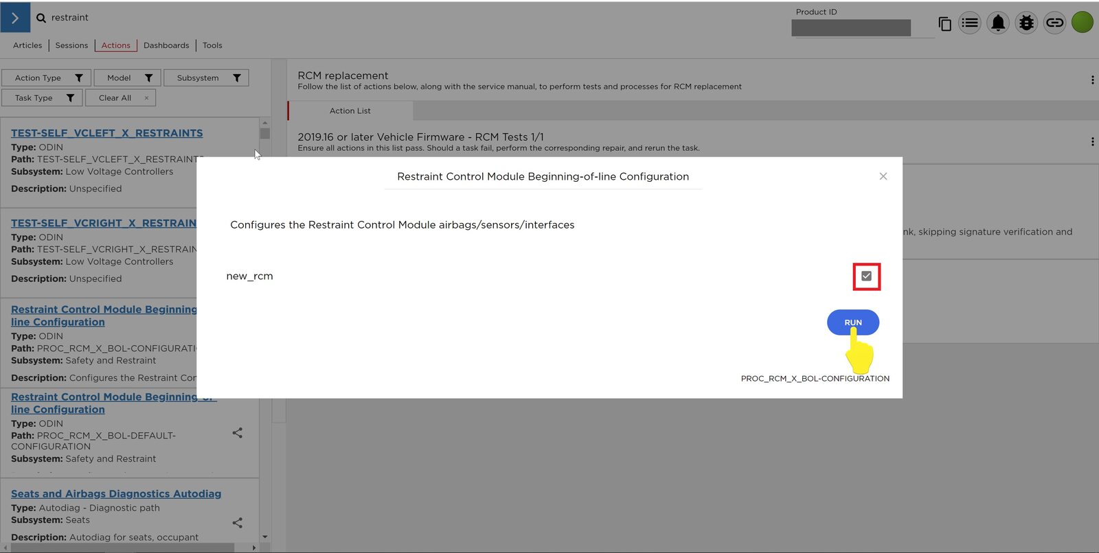Run "Restraint Control Module Beginning-of-line Configuration" PROC_RCM_X_BOL-CONFIGURATIONvia Toolbox: (link) routine